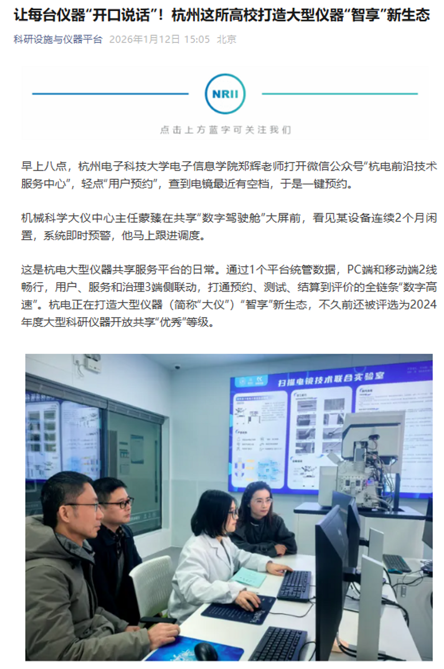 科研设施与仪器平台报道——让每台仪器“开口说话”!杭州这所高校打造大型仪器“智享”新生态